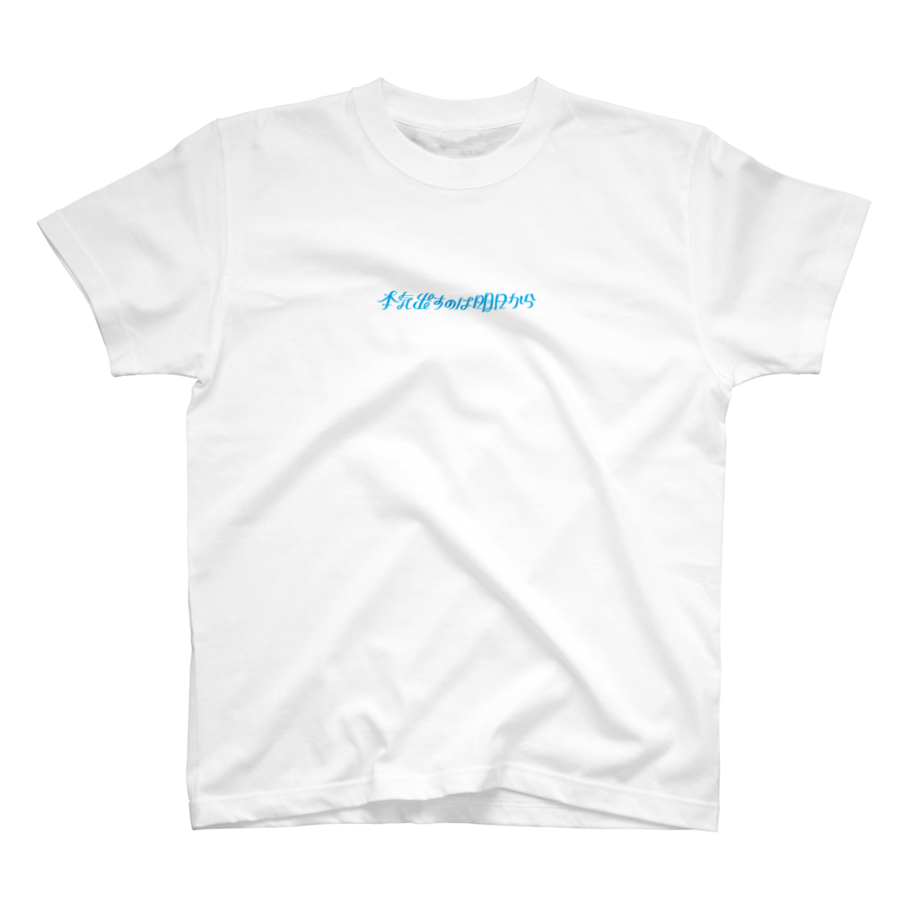 前面には「本気出すのは明日から」のロゴ、背面にはマジ明日キャラクターのオリジナルイラストがフルカラーでプリントされています。